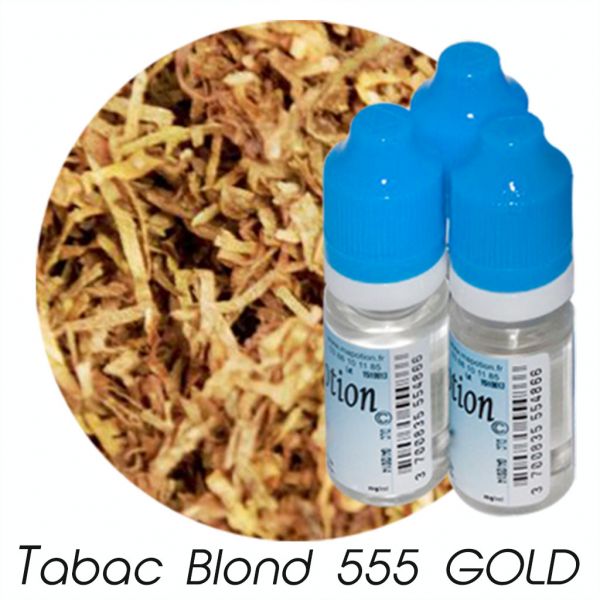 Lot de 3 E-Liquide TABAC BLOND 555 GOLD, Eliquide Français Ma Potion, recharge cigarette électronique. Sans nicotine ni tabac
