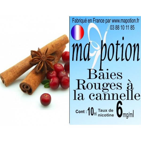 E-Liquide Saveur Baies rouges à la cannelle, Eliquide Français, E-liquid Ma-Potion. Recharge Liquide pour cigarette électronique, Ecig. Recharge E-liquide compatible avec toutes les cigarettes, cigares et pipes électroniques, Ecig utilisant du liquide, Eliquide ou E-liquide. Remplissez votre cartomiseur, clearomiseur, stardust, eGo-C-T CE4 CE4+ v3 CE5 Vcore Vivi-nova Megatwix Protank.